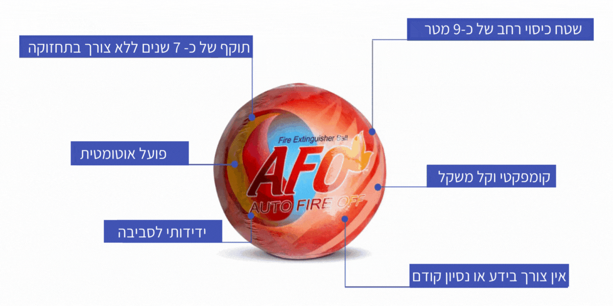 כדור כיבוי אש אוטומטי הוא פטנט חדשני שהומצא ע"י מחלקת כיבוי אש שפועל 24\7 ללא מגע ידי אדם לבית, לרכב ולעסק.